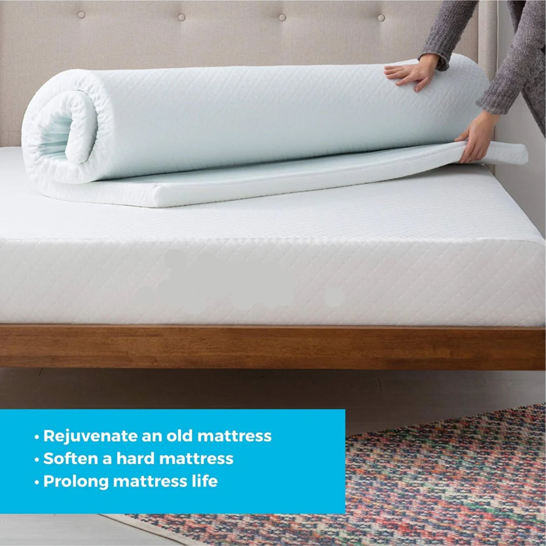 The topper is covered in a luxurious 280 gsm knitted fabric with removable zip cover.