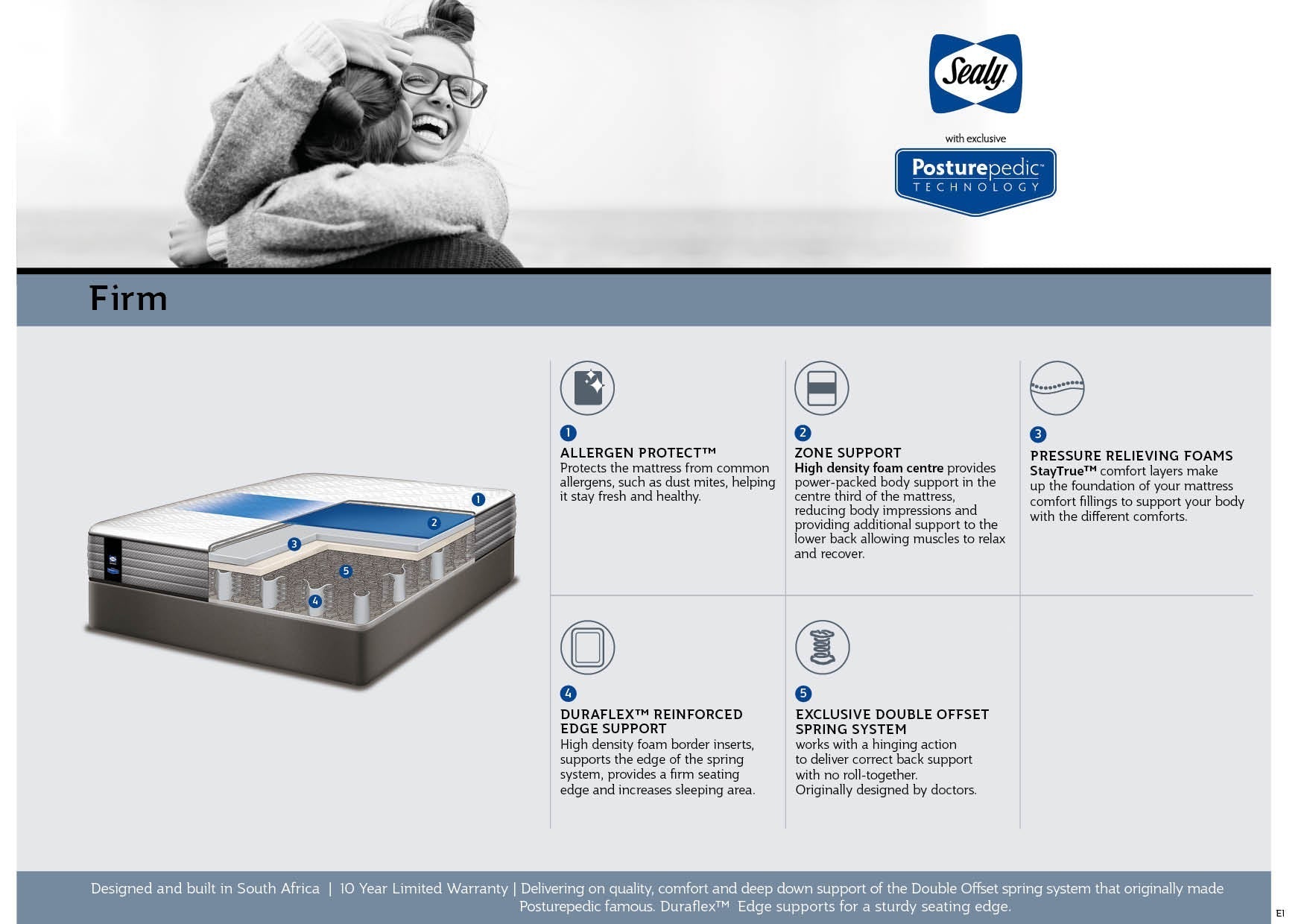 Delivering on quality, comfort and deep down support of the Double Offset spring system that originally made Posturepedic famous. Duraflex Edge supports for a sturdy seating edge.